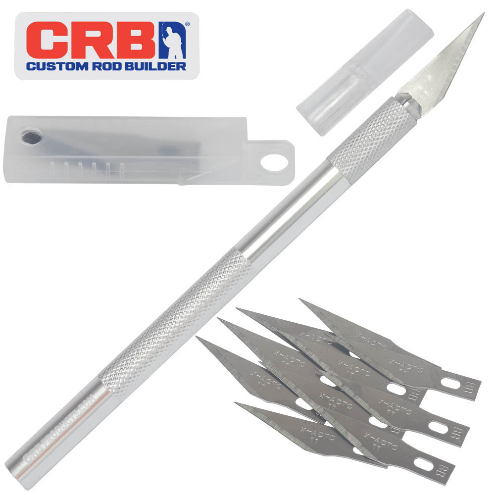The CRB Exacto utility knife is perfect for jobs like trimming thread tie-offs and removing damaged guides during rod repair. Comes with 11 surgically sharpened steel blades and a safety cover. Deeply knurled grip for precision and safety.